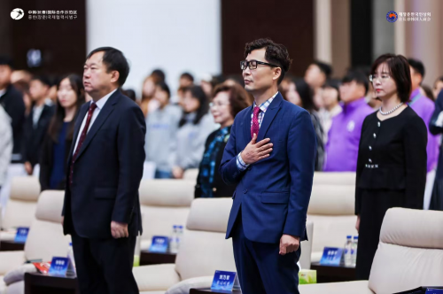 上午10时,开幕式在庄严的中韩两国国歌声中拉开帷幕。中韩示范区党工委书记刘乃军在致辞中表示,韩国周是促进中韩经贸合作与人文交流的重要平台,也是两国友谊在地方层面的生动实践。他强调,中韩示范区将继续发挥桥梁作用,拓展合作网络,推动双边关系迈向新高度。